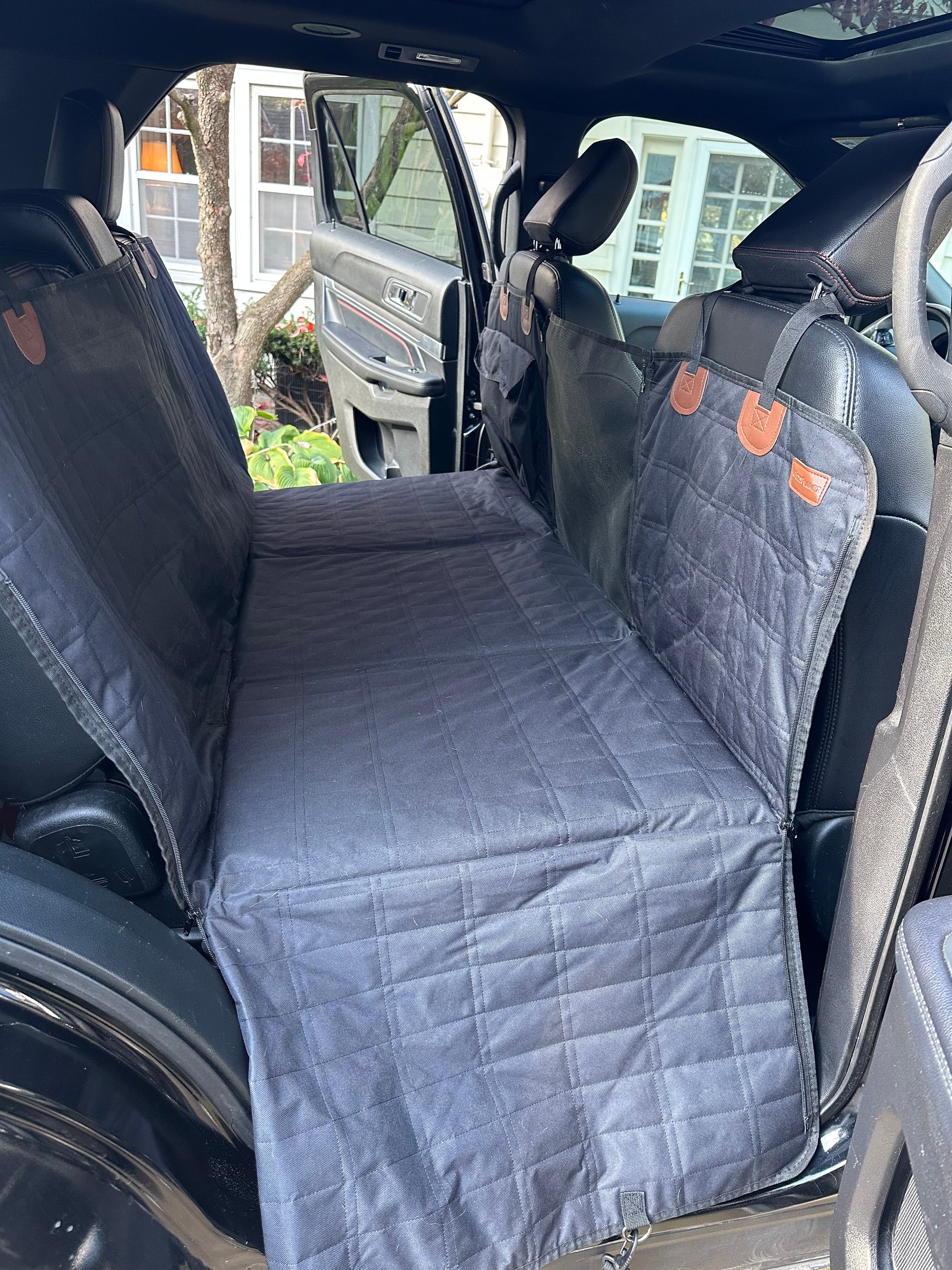 Engineered for everyday convenience, it fits all car models and pet sizes thanks to its flexible straps and adaptable fold-out design. It sets up in minutes, is 100% waterproof and tear-proof, and shields your car from dirt, hair, and sharp nails. When you need extra space, simply fold it up on one side to make room for a passenger or a car seat—without removing the entire setup.